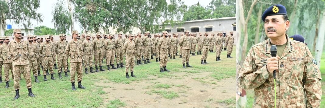 Rawalpindi :  Field Marshal Syed Asim Munir, NI (M), HJ, Chief of Army Staff, visited flood affected areas of Punjab including Sialkot Sector, Shakargarh, Narowal and Kartarpur. The visit was aimed to review the flood situation and the ongoing rescue and relief efforts. COAS was given a comprehensive brief on the prevailing situation and the preparations for the next spell of rains. COAS appreciated the troops and the civil administration for their coordinated and untiring efforts in rescuing and providing relief to the masses in affected areas.