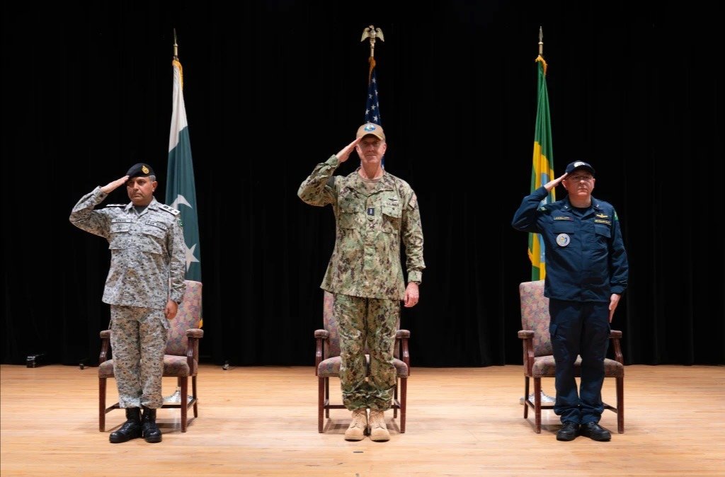 Bahrain, : Pakistan Navy has successfully relinquished command of Combined Task Force 151. Commodore Sohail Ahmad Azmie of Pakistan Navy handed over the Command to Rear Admiral Marcelo Lancellotti of Brazilian Navy. The ceremony was presided by Vice Admiral George Wikoff, Commander of Combined Maritime Forces (CMF), at HQ CMF, Bahrain.