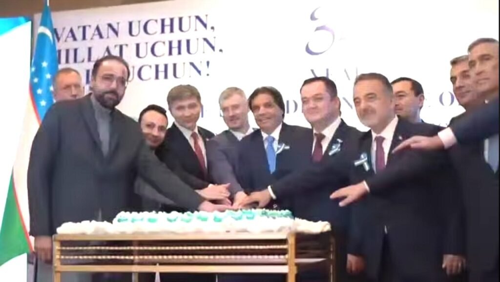 Hanif Abbasi joined the Ambassador of Uzbekistan and other distinguished guests in cutting the celebratory cake and extended warm felicitations to the government and people of Uzbekistan. Federal Minister Overseas Pakistanis and Human Development , Chaudhry Salik Hussain, Coordinator to Prime Minister on Tourism Sardar Yasir Ilyas were also among the prominent guest.