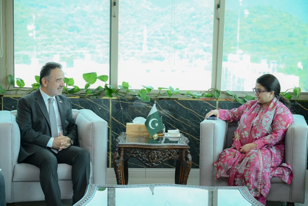 Islamabad – Irfan Naziroglu, Ambassador of Turkiye to Pakistan, called on Federal Minister for IT & Telecommunication, Shaza Fatima Khawaja, for a constructive meeting focused on enhancing bilateral cooperation in ICT, digital transformation, and innovation.