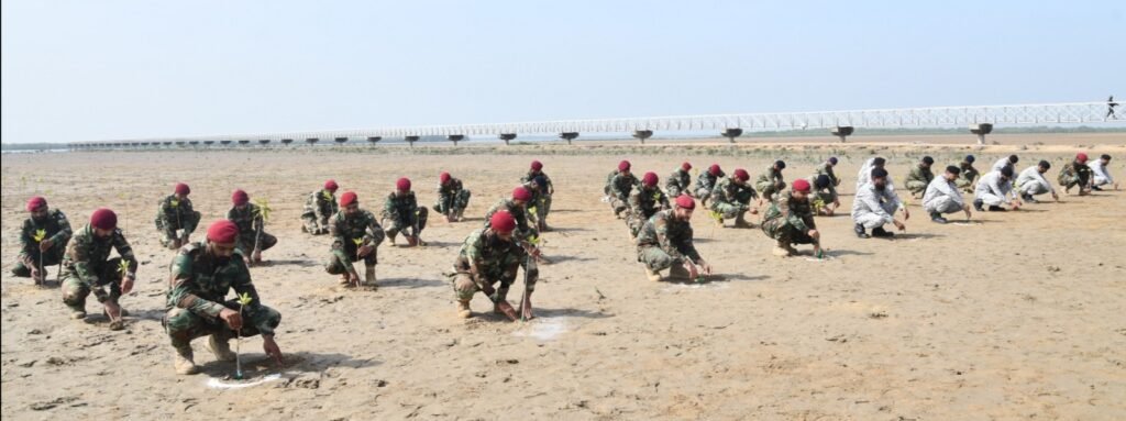 Karachi : Pakistan Navy launched the Mangrove Plantation Campaign 2025 at Bin Qasim, Gharo. Commander Coast, Rear Admiral Faisal Amin, graced the occasion as the Chief Guest and planted a sapling.