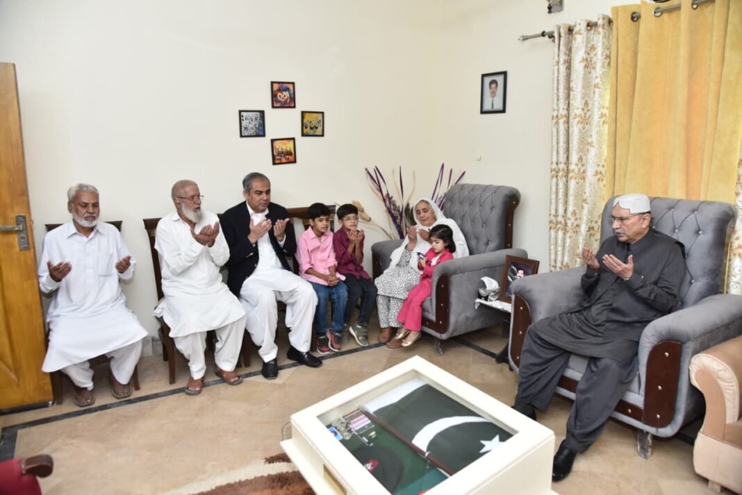 ISLAMABAD : President Asif Ali Zardari visited the residence of Lt Col Junaid Shaheed in Rawalpindi to offer condolences to the bereaved family.