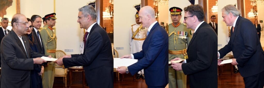 Islamabad : Four newly designated envoys presented their credentials to President Asif Ali Zardari at a ceremony held at Aiwan-e-Sadr.