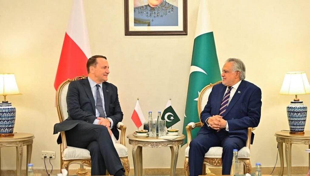 Islamabad : Deputy Prime Minister / Foreign Minister Senator Mohammad Ishaq Dar received the Deputy Prime Minister & Foreign Minister of Poland H.E. Radosław Sikorski at the Ministry of Foreign Affairs.