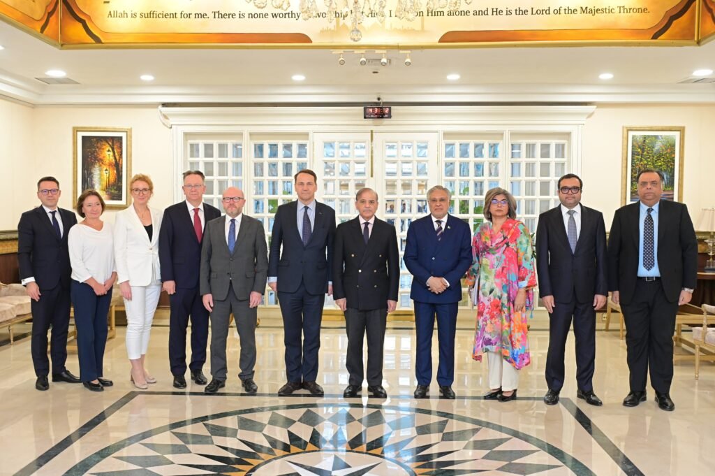 Islamabad : Radosław Sikorski, Deputy Prime Minister & Foreign Minister of Poland, paid a courtesy call on the Prime Minister at the Prime Minister’s House. The Deputy Prime Minister & Foreign Minister Muhammad Ishaq Dar, Foreign Secretary Amna Baloch and Pakistan’s Ambassador to Poland Sami Malik also attended the meeting.