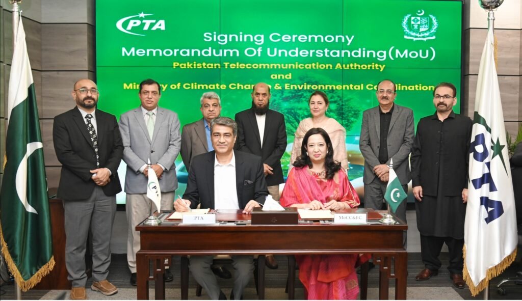 Islamabad : Pakistan Telecommunication Authority (PTA) and the Ministry of Climate Change & Environmental Coordination (MoCC&EC) have signed a landmark Memorandum of Understanding (MoU) at PTA Headquarters to advance Green ICT, promote responsible e-waste management, and foster climate-resilient digital infrastructure across Pakistan.