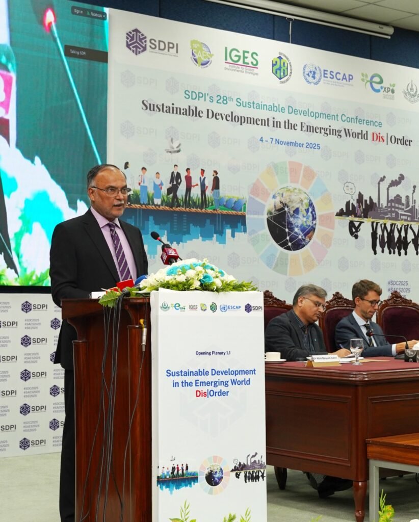 ISLAMABAD : Federal Minister for Planning, Development and Special Initiatives Prof. Ahsan Iqbal has said that Pakistan must harness innovation, inclusivity and integrity to navigate rising global instability and shape a new development world order. The minister underscored that Pakistan’s contribution to global carbon emissions is negligible, yet the country remains severely vulnerable to the impacts of climate change. He said climate shocks continue to erode economic stability and development gains.