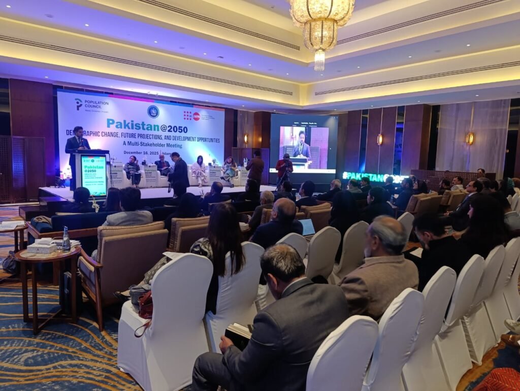 The Ministry of Planning and Development and Special Initiatives, in collaboration with the Population Council and UNFPA, convened a high-level multi-stakeholder meeting titled “Pakistan @2050: Demographic Change, Future Projections and Development Opportunities.” The forum brought together senior federal and provincial officials, researchers, civil society representatives, and media to examine Pakistan’s population trajectory up to 2050 and its implications for human development, economic growth, urbanization, and climate resilience.