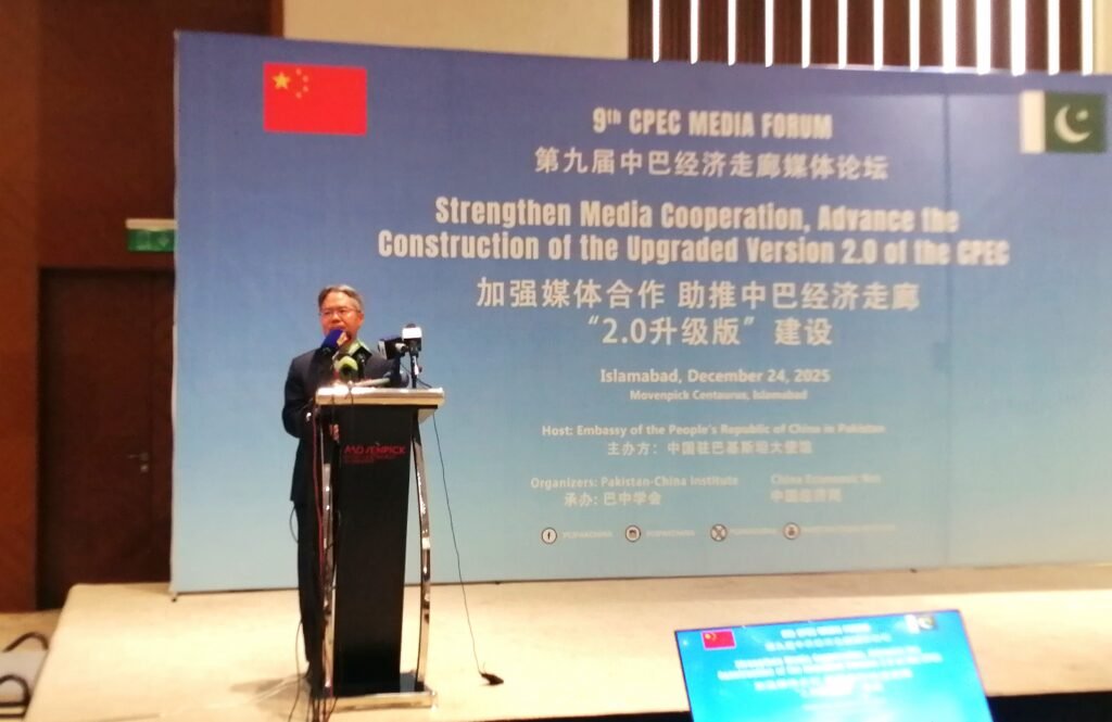 Ambassador Jiang Zaidong, Ambassador of China to Pakistan, thanked Pakistani participants and PCI, saying that whenever he hears Pakistani speeches he feels “moved,” and praising the way Pakistan–China friendship “could cross all political parties and all sectors.” He reiterated China’s position that it “cannot tolerate any person or any force who seek to split Taiwan from China,” and expressed appreciation for Pakistan’s “firm commitment” to the one-China principle and its support for safeguarding sovereignty, unity, and territorial integrity. Recalling that the forum was founded in 2015 alongside CPEC’s development after President Xi Jinping’s historic visit and a “one-plus-one” cooperation framework, he pointed to continued high-level exchanges and renewed consensus to advance the all-weather partnership and build CPEC into a “comprehensive multi-sectoral” flagship under the Belt and Road Initiative. He praised media’s role in countering distortions, referencing the idea that there are “two powers in the world…a sword and…a pen,” and commended journalists for turning “pen into swords” by addressing claims with facts. On CPEC 2.0, he outlined three focus areas, agriculture, mining, and industry, and cited industrial cooperation and livelihoods impacts, including manufacturing and textile-park investments he said would create large-scale employment, while emphasizing future emphasis on “export-oriented” and “people’s livelihood” projects. He also referenced cooperation in infrastructure, Gwadar-related connectivity, and practical social-sector support, including medical equipment and training components.