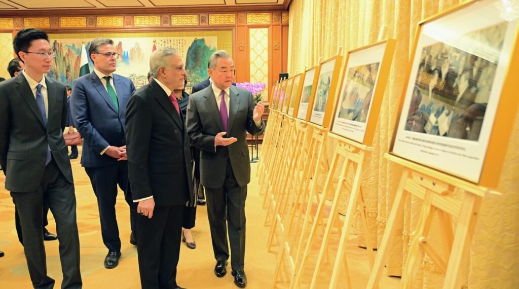 Beijing : During his visit to Beijing, DPM/FM Senator Mohammad Ishaq Dar, together with Chinese Foreign Minister Wang Yi, viewed a special photo exhibition tracing 75 years of Pakistan-China friendship. The exhibition highlights key milestones in the evolution of the All-Weather Strategic Cooperative Partnership from early diplomatic exchanges to the launching of CPEC and beyond, reflecting a shared journey of mutual trust, support, and cooperation.