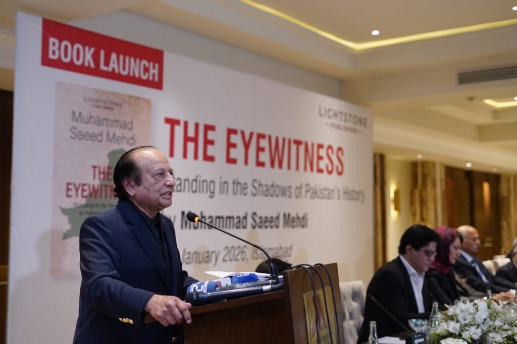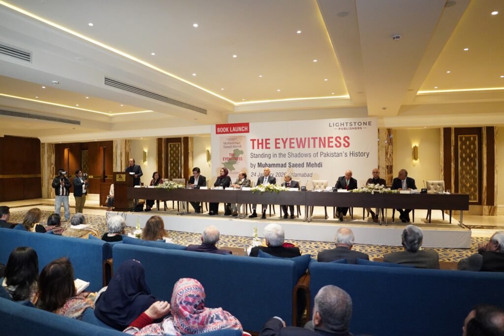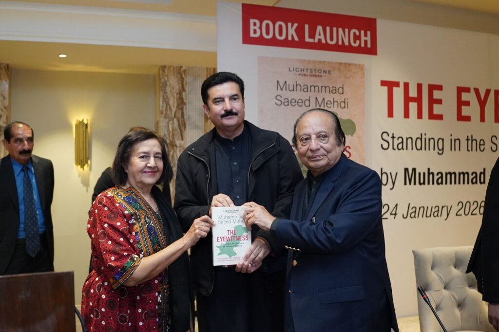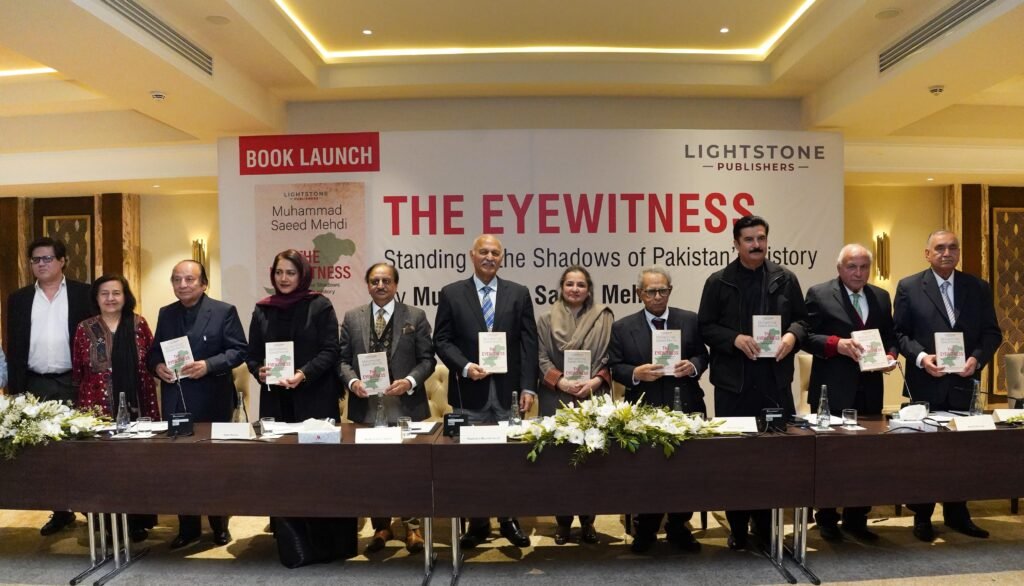 Islamabad : Lightstone Publishers launched The Eyewitness: Standing in the Shadow of Pakistan’s History by Muhammad Saeed Mehdi, former principal secretary to Prime Minister Nawaz Sharif, former chief secretary Sindh, and senior civil servant, in Islamabad. The book presents a firsthand account of Pakistan’s political history, documenting defining national moments closely witnessed by the author.