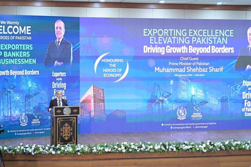 He also announced awarding blue passports with validity of two years to those exporters and businessmen who won awards. He said the recipients will be ambassadors at large. Prime Minister said Pakistan has become a stable economy, emphasizing that the country will have to be taken towards sustainable growth.