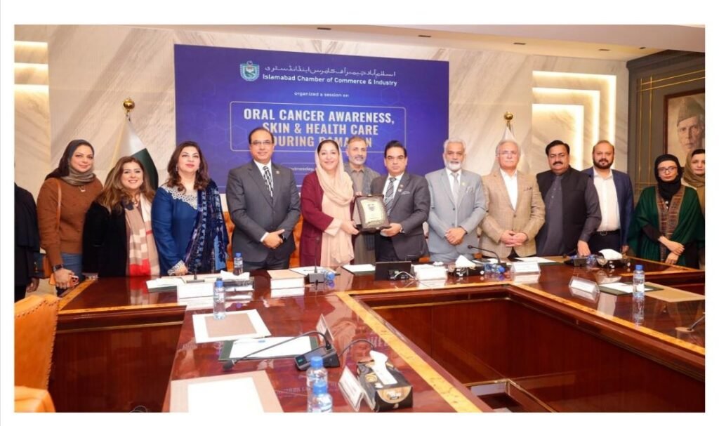 Islamabad: Islamabad Chamber of Commerce and Industry (ICCI) organized an impactful awareness session titled “Oral Cancer Awareness, Skin and Health Care during Ramadan” at the Chamber House. The event was graced by State Minister for Federal Education and Professional Training, Ms. Wajiha Qamar, as the Chief Guest. Former Presidents, executive committee members, distinguished medical experts, and members of the business community attended the session in large number.