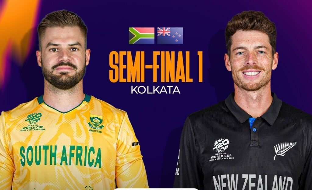 Kolkata :- In the ICC T20 World Cup, the first semi-final will be played between New Zealand and South Africa in Kolkata on Wednesday. The match will start at half past six in the evening.