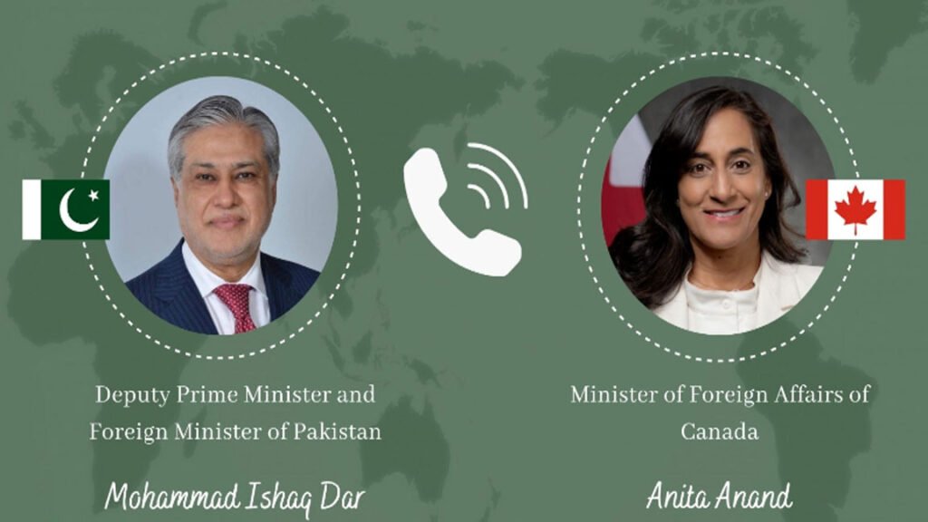 The Canadian Foreign Minister conveyed the appreciation during her telephonic conversation with Deputy Prime Minister Ishaq Dar.