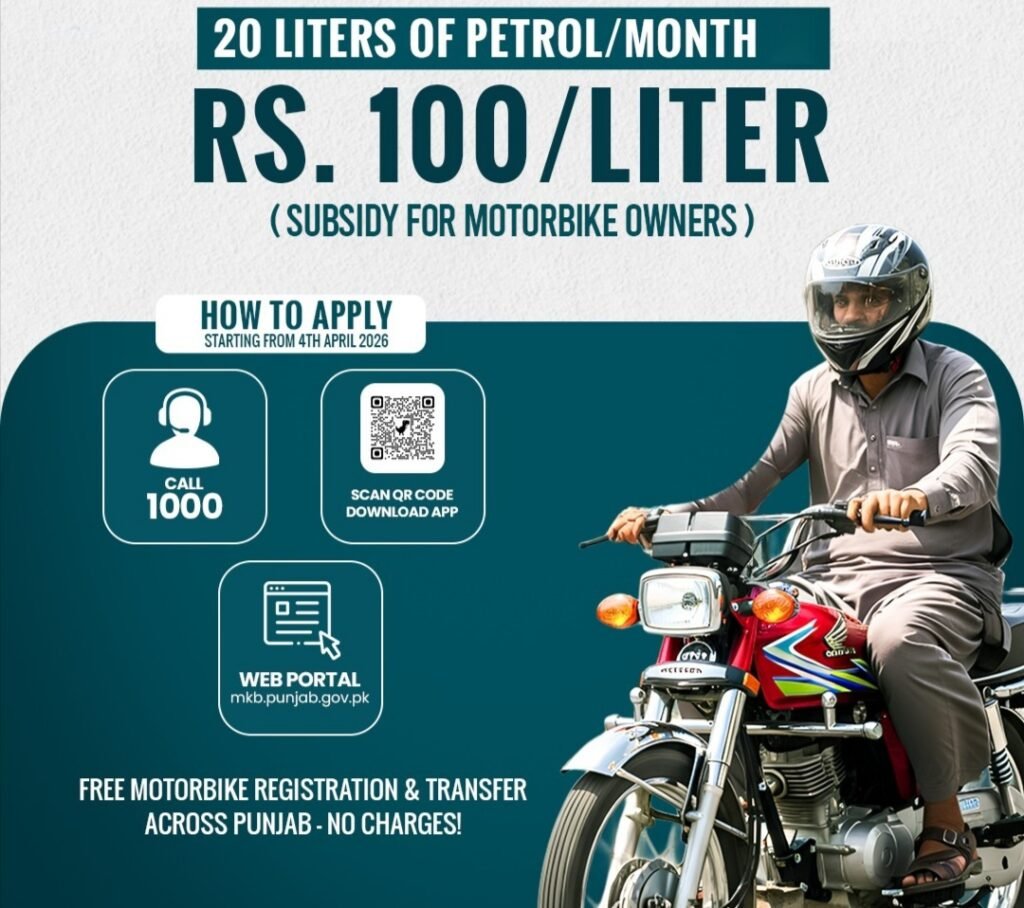 She also waived motorcycle transfer fee, besides giving a monthly subsidy of Rs. 2,000, on 20 liters of petrol per month @ Rs 100 per liter, to every registered bike. She said that in order to obtain fuel subsidy, registered motorcycle owners can call helpline 1000 or use a mobile app “Maryam ko Batayn” on Play Store or can apply on the web portal: