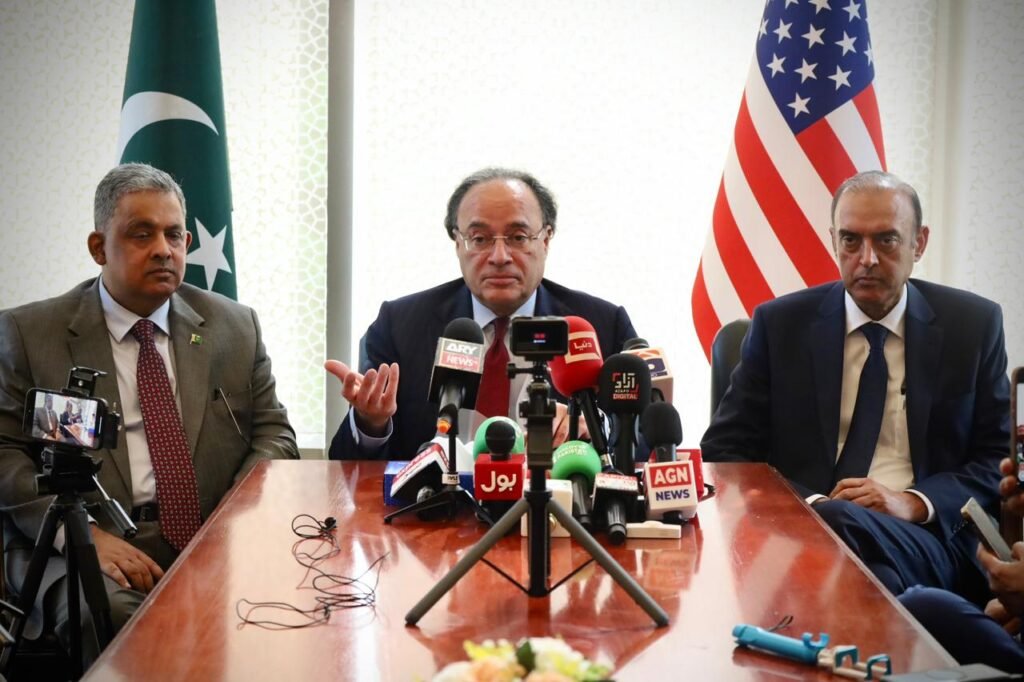Washington, D.C (GNP) – Federal Minister for Finance and Revenue, Senator Muhammad Aurangzeb, briefed Pakistani media representatives based in Washington, D.C. on Pakistan’s evolving economic outlook, progress on reforms, and outcomes of his engagements during the World Bank-IMF Spring Meetings 2026. The interaction was also attended by Governor, State Bank of Pakistan, Jameel Ahmad, and Pakistan’s Ambassador to the United States, Rizwan Saeed Sheikh.