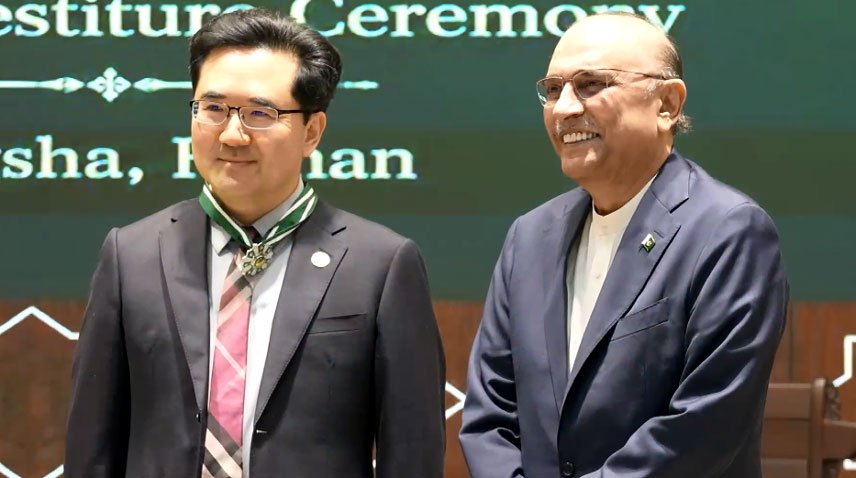 Changsha (GNP) :— President Asif Ali Zardari today conferred the Sitara-i-Pakistan upon Prof. Pan Xiangbin at a special investiture ceremony held in recognition of his outstanding contributions to cardiac care and his services to patients in Pakistan.