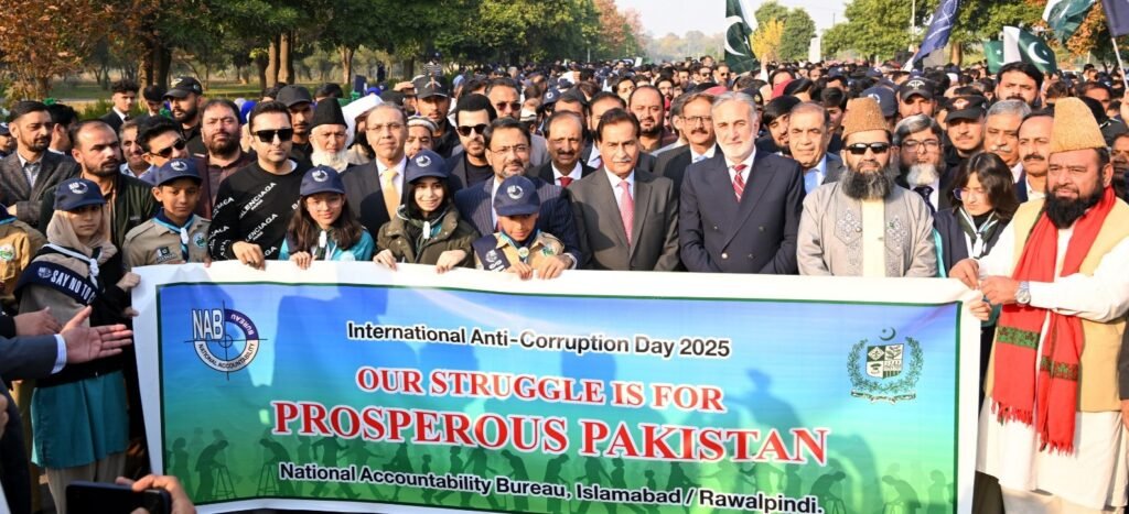 Islamabad : Speaker National Assembly Sardar Ayaz Sadiq participated in the Anti-Corruption Awareness Walk 2025 organized by the National Accountability Bureau (NAB) at the Sports Complex. The walk was attended by federal ministers, Members of the National Assembly, senior officials, and renowned personalities.